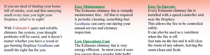 Geoflame use a sophisticated time delay system that enables both fire and fan extract unit to be controlled by one remote hand set. This can also be integrated within most home automation systems.